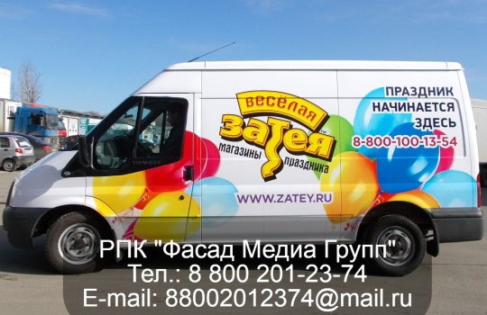 Многие бизнесмены закупают для нужд своей компании корпоративные автомобили. Зачастую, на корпоративных авто можно увидеть рекламу, нанесенную на борта. Как правило, такая реклама посвящена продукции и услугам компании. ООО «Фасад Медиа Групп» помогает своим клиентам наносить рекламу на борта корпоративных машин. Обращайтесь в нашу компанию для размещения корпоративной рекламы на собственных авто, и вы получите высокий уровень сервиса и разумные цены