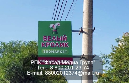13.06.2022 г. Размещение рекламы на панель-кронштейнах для зоомагазина «Белый кролик»
